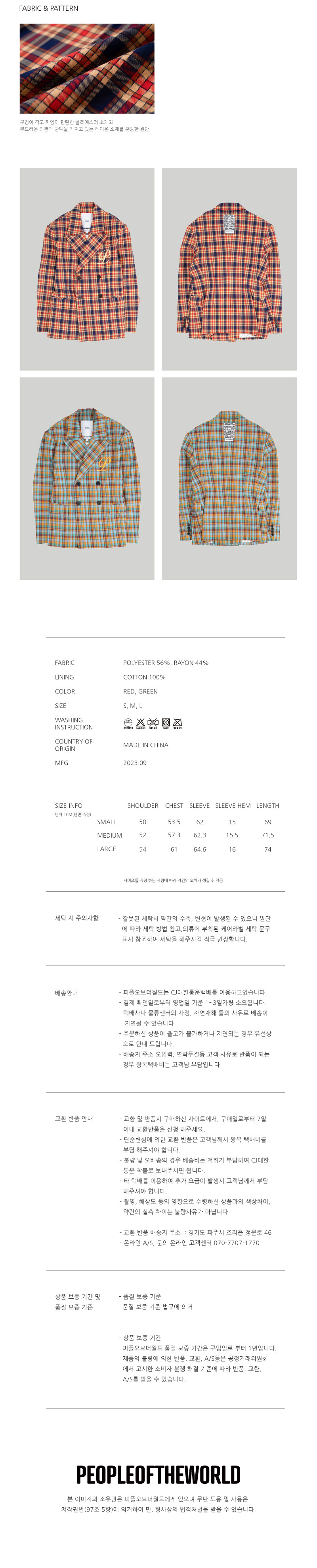 ° 컬러감이 강한 레드와 그린 컬러를 섞은 탄 체크 원단으로 클래식한 느낌과 캐주얼한 느낌을 한 가지 아이템으로 연출이 하고,