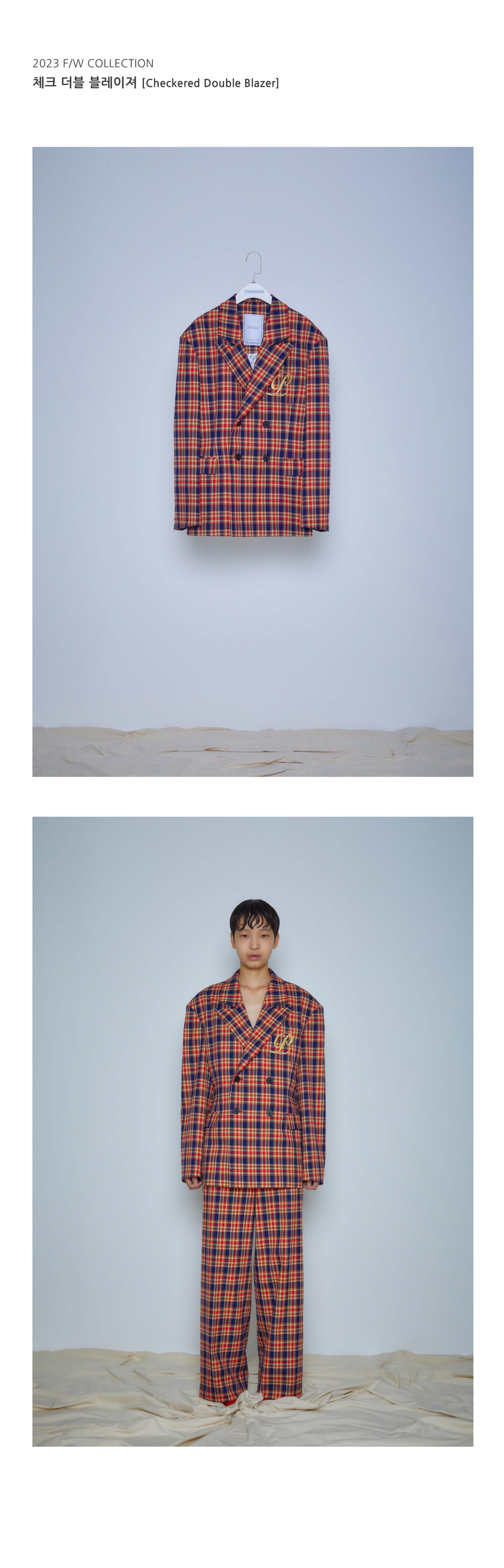 ° 더블 버튼 여밈과 플랩포켓 디자인으로 캐주얼함과 클래식한 분위기를 연출.