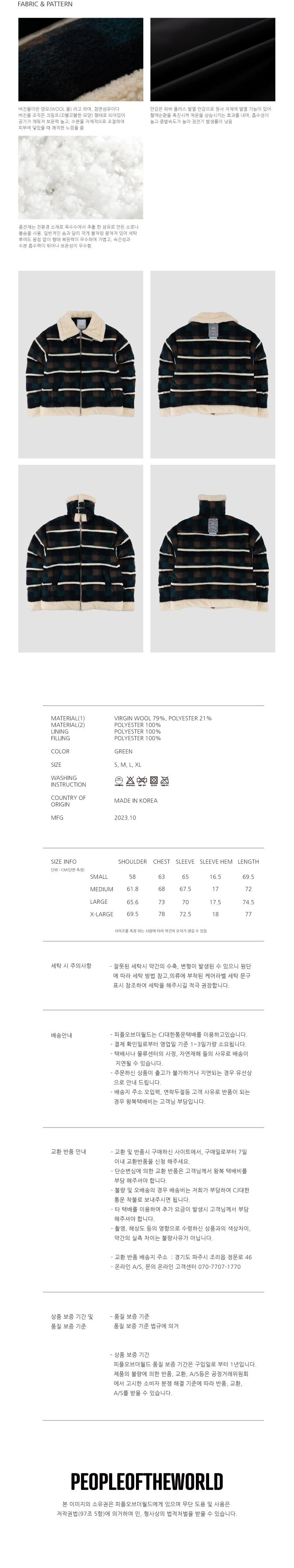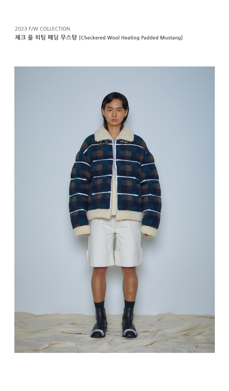 ° 버진울과 폴리가 혼용된 이태리 체크 원단으로 디자인한 MA-1 스타일의 무스탕 점퍼