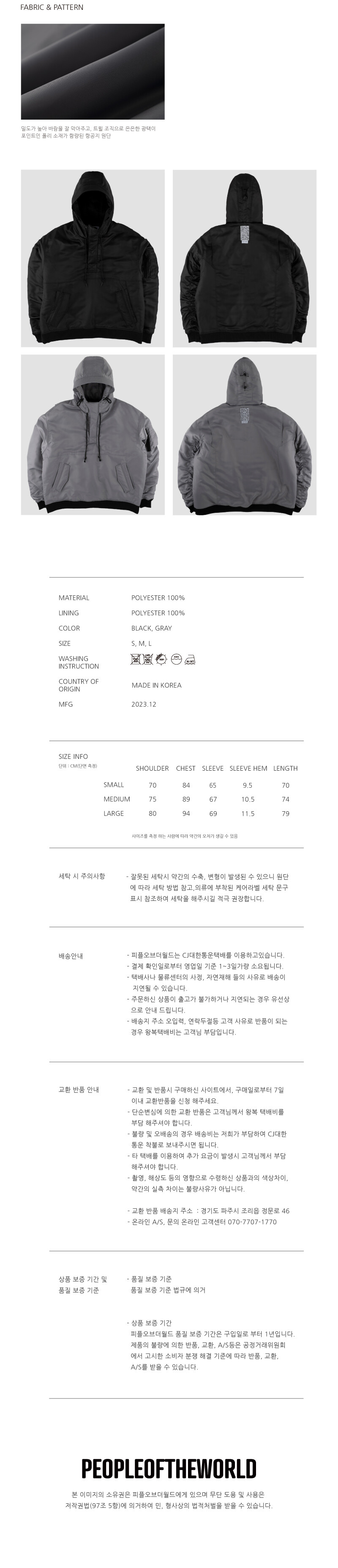 °아우터 대신 착용 가능한 따듯한 MA-1스타일의 패딩 아노락 디자인
