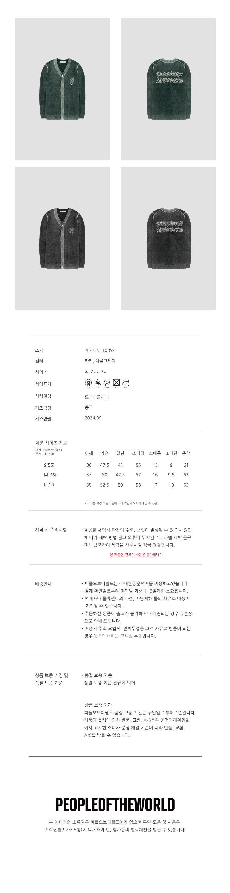 퓨어 캐시미어 유니섹스 가디건_CC