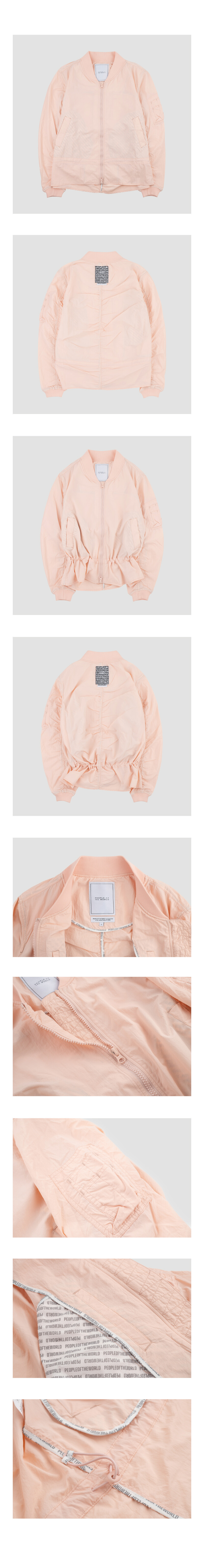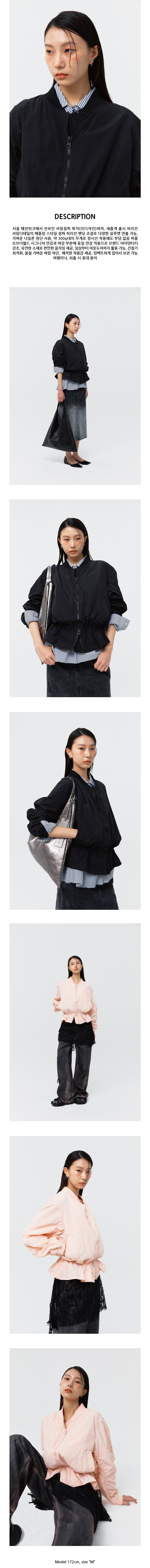 셔링디테일의 페플럼 스타일 점퍼 허리선 밴딩 조절로 다양한 실루엣 연출 가능,