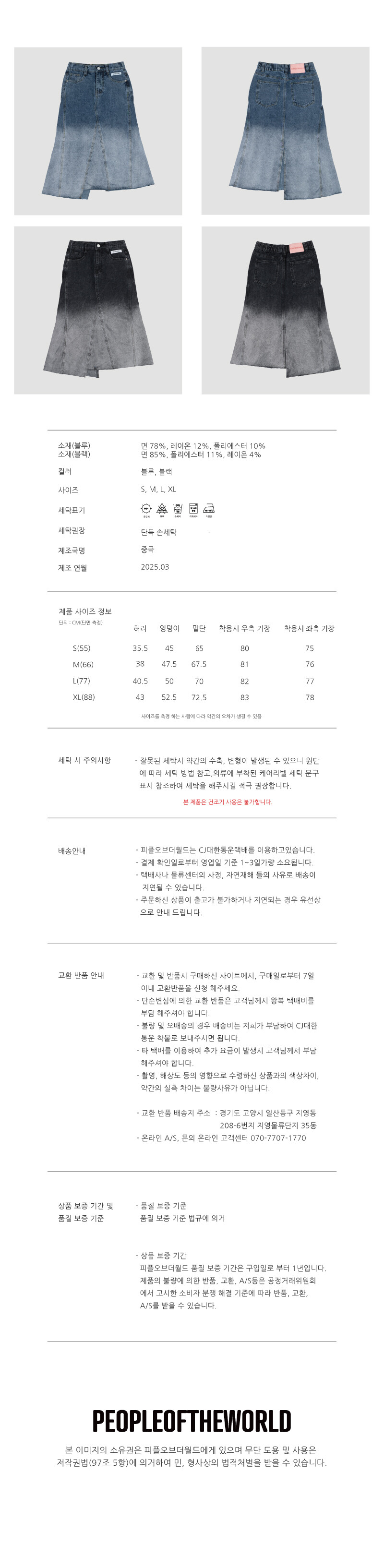 데님 스커트로 새롭게 출시, 깔끔한 실루엣 연출, 허리 부분 밴딩으로 편안한