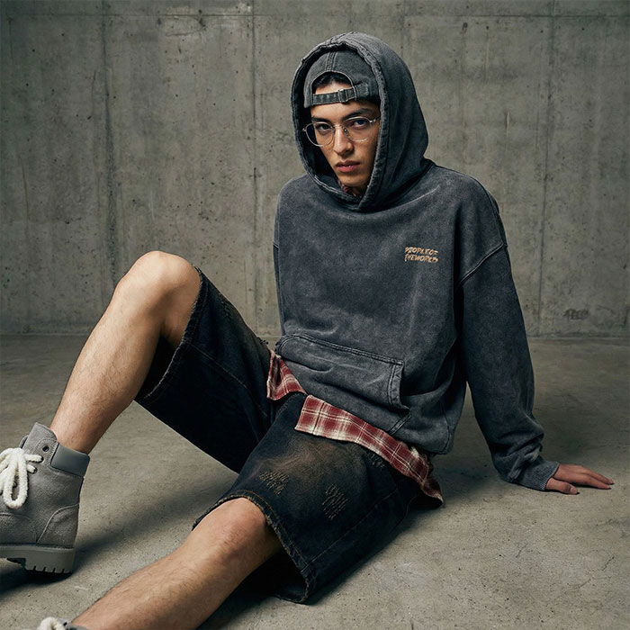 타이포 로고 자수 워시드 후드