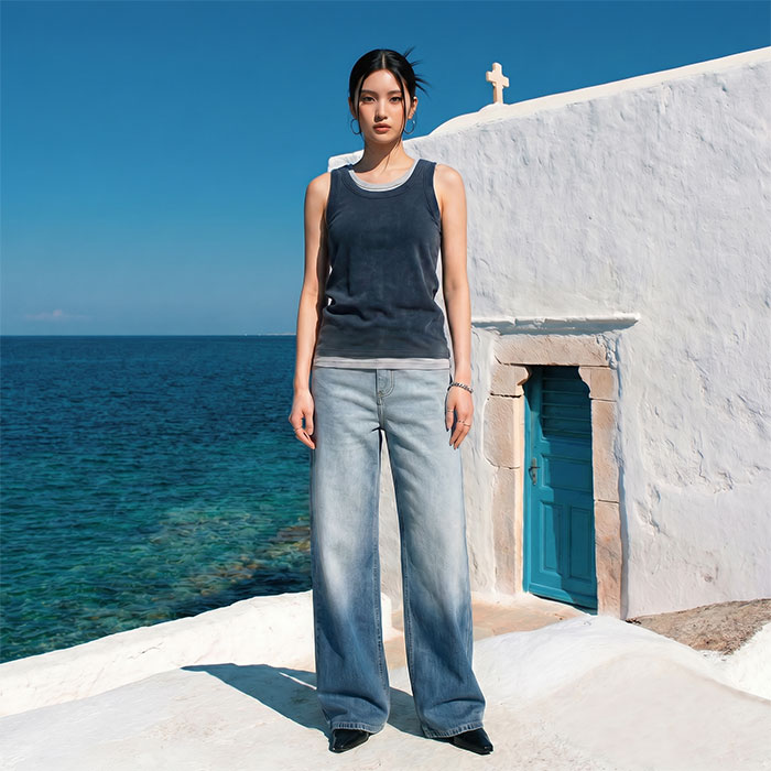그라데이션 세미 와이드 데님 팬츠