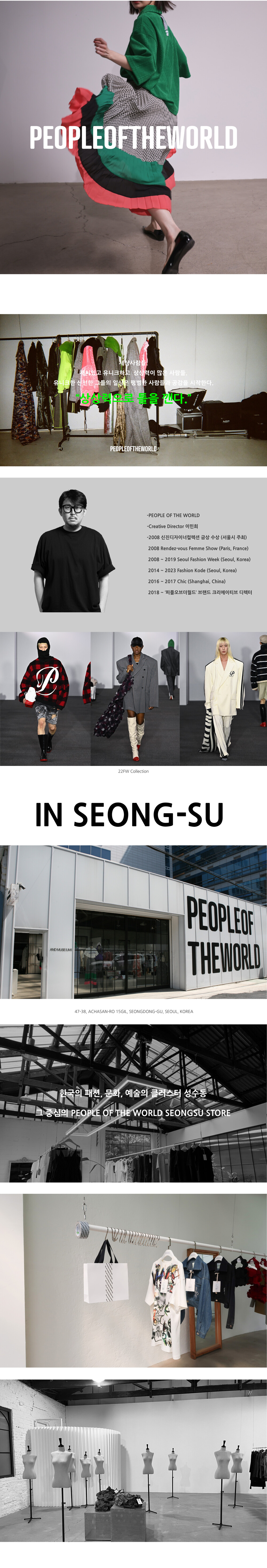 º 피플오브더월드만의 시그니처인 심볼을 3D자수, 입체자수라고도 불리는 고무자수 공법으로자수 모양대로 고무를 올리고 그 위를 봉사로 덮어 작업함.