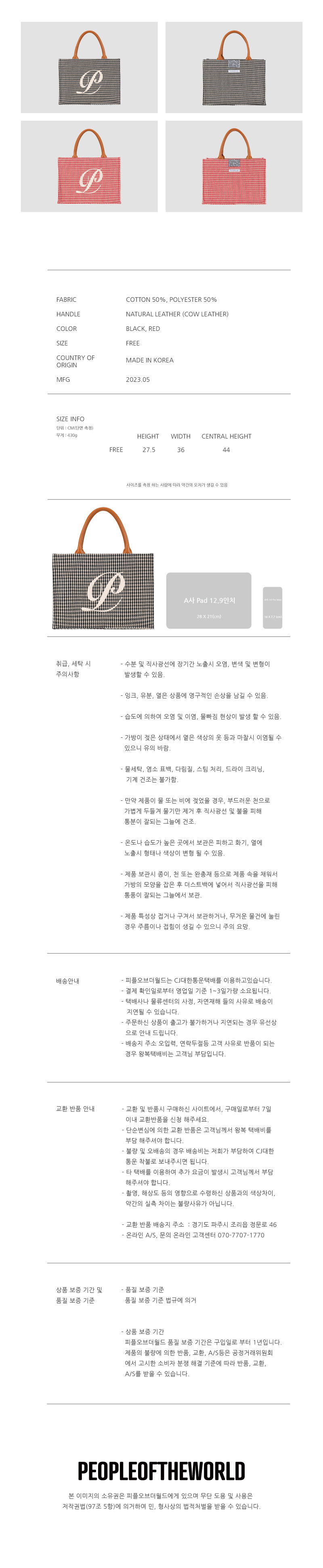 º 핸드백 안쪽으로 피플오브더월드 로고를 프린팅한 면 100%인 원단을 사용하여디테일함과퀄리티를 높임.