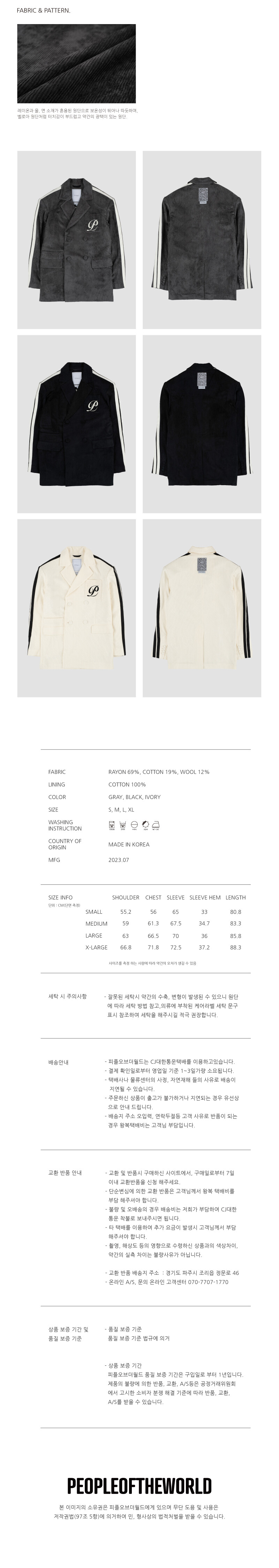 °어깨라인부터 소매 끝 라인까지 테이프로 디테일로 피플오브더월드만의 아이코닉 한 디자인.